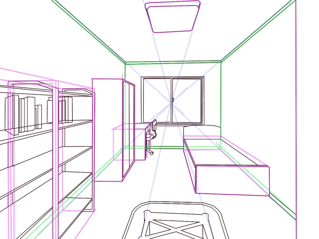 これは、セトの部屋になる予定だった場所です。本来、セト宅訪問イベントがあったのですが、4/1が迫っていたのと、訪問イベント入れると話が冗長になるのでボツになりました。本当はリビングの背景も描いていたのですが、その画像は