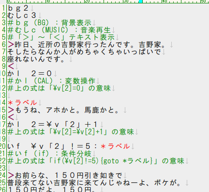 かと言ってネタコモンかというとそんな事はなく、考えられる限り最低限の手間で分岐付きADVを作れるよう各コマンドの構文解析はガチ仕様になっています。