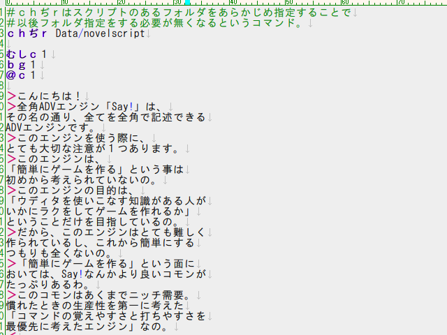 知らない人が見たら文字化けにしか見えない特殊な仕様のADVエンジン「Say!」アルファ版を昨日からTwitter上で公開していました。今回バージョンアップ版を公開したのでブログ上でも紹介します。