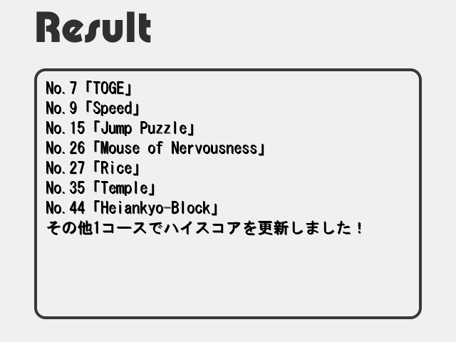 まあこれはしょうがないといえばしょうがないのですが、短期間で大量のゲームをプレイすることになるこのようなイベントでは、王道や長編の作品というのは高クオリティでもなかなか高評価を得にくい状態になってしまいます。そしてコンテスト後にいらっしゃったお客さんは順位が上の作品を優先的にプレイするでしょうからさらに影に埋もれることになってしまいます。