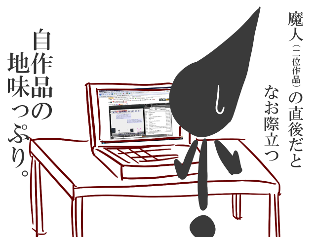 今回はまさかの初日提出です。確かエントリーしたのは0:10分頃で、1つ前のエントリーまでは0:00時点で既にエントリーされてた「フライングエントリー」です。すなわちこの作品が