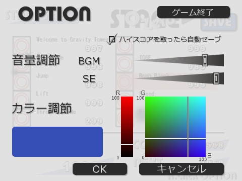 で、この画像はオプション画面。今回はオートセーブ搭載しました。