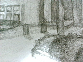 最初は手軽に学校の写真を元にデッサンしてみました。
