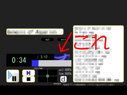 これによって、世にも珍しい「グラフィカルなmp3プレーヤー」が出来上がりました。なにそれ。